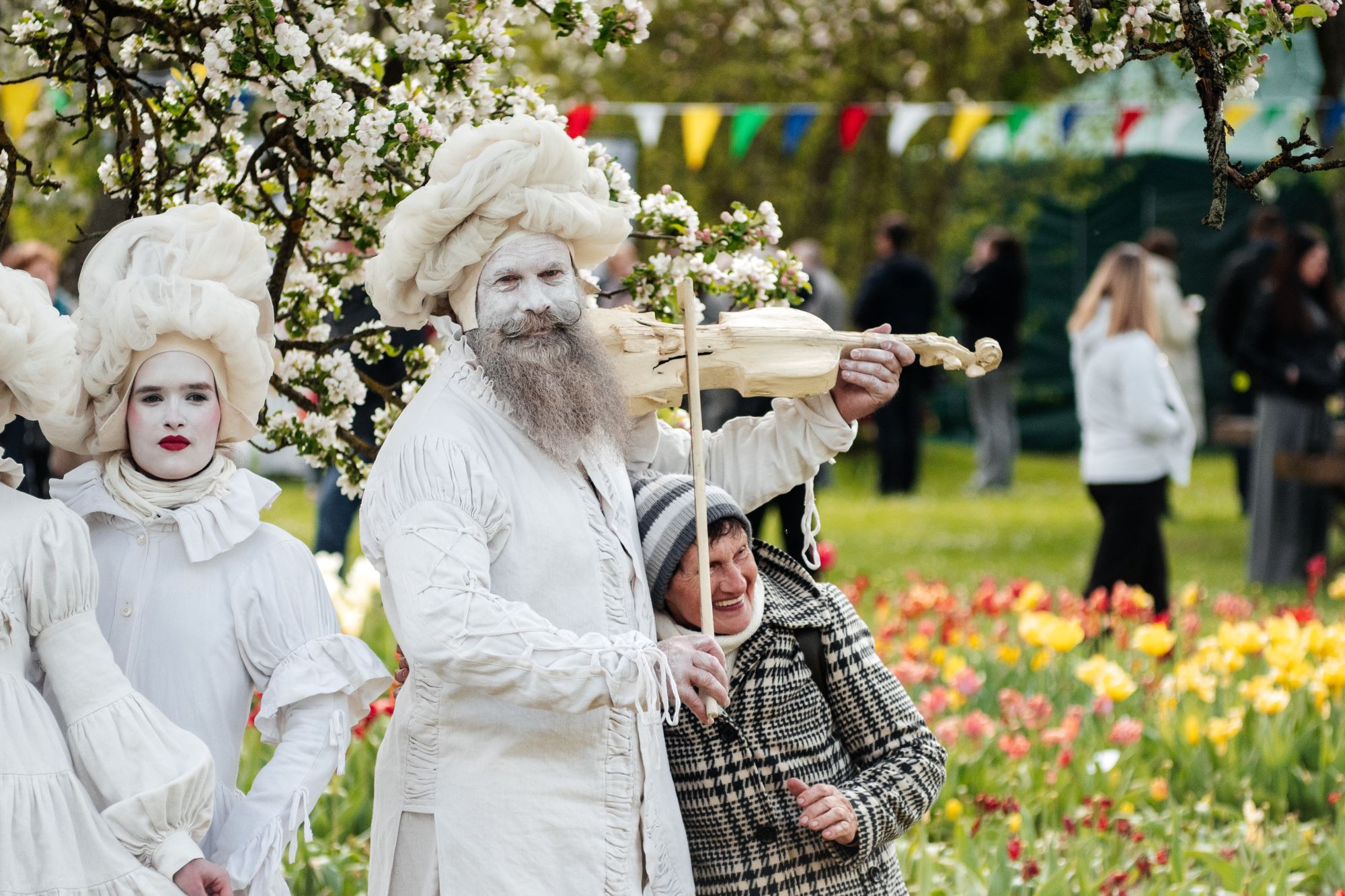 Atgiję Klaipėdos pilies teatro personažai iš spektaklių „Versalio sodai“ ir „Kariatidės“ pratęs dvare gyvavusią pasivaikščiojimų tradiciją, džiugins netikėtais mini etiudais ir gyvaisiais paveikslais. Ūgiu stebins netikėti džentelmenai – kojūkininkai.