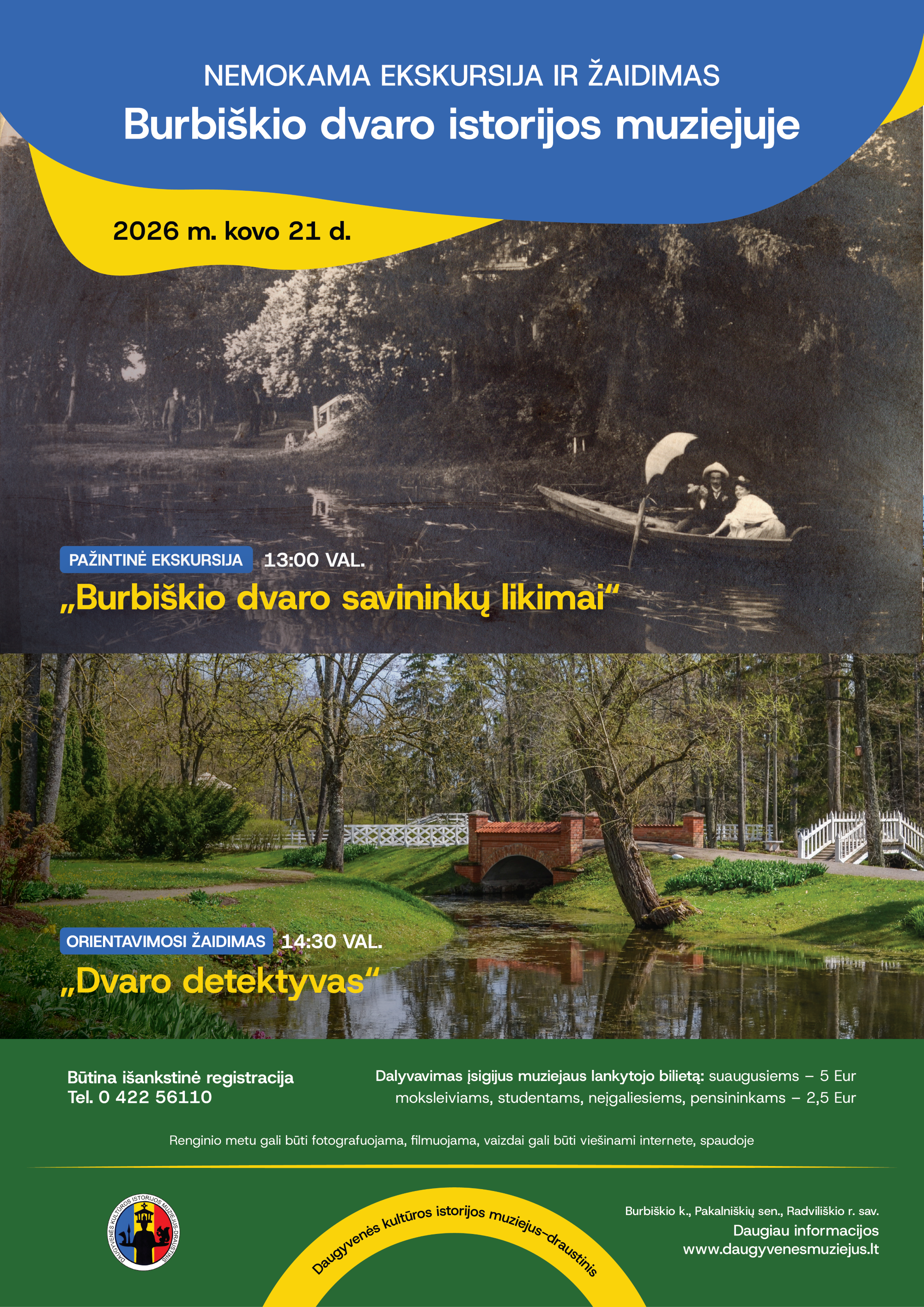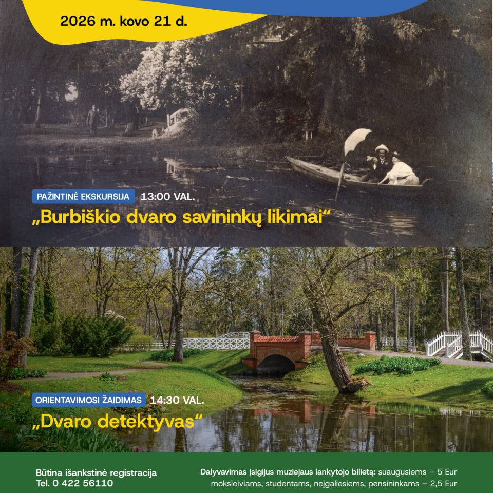 Kovo 21 d. Burbiškio dvaro istorijos muziejuje vyks du nemokami renginiai: pažintinė ekskursija „Burbiškio dvaro savininkų likimai“ ir orientavimosi žaidimas „Dvaro detektyvas“. Burbiškio dvaras su romantizmo, istorizmo ir neogotikos stiliaus pastatais bei peizažiniu parku saugo ypatingą atmosferą – ją patirs ir ekskursijos bei orientavimosi žaidimo dalyviai.