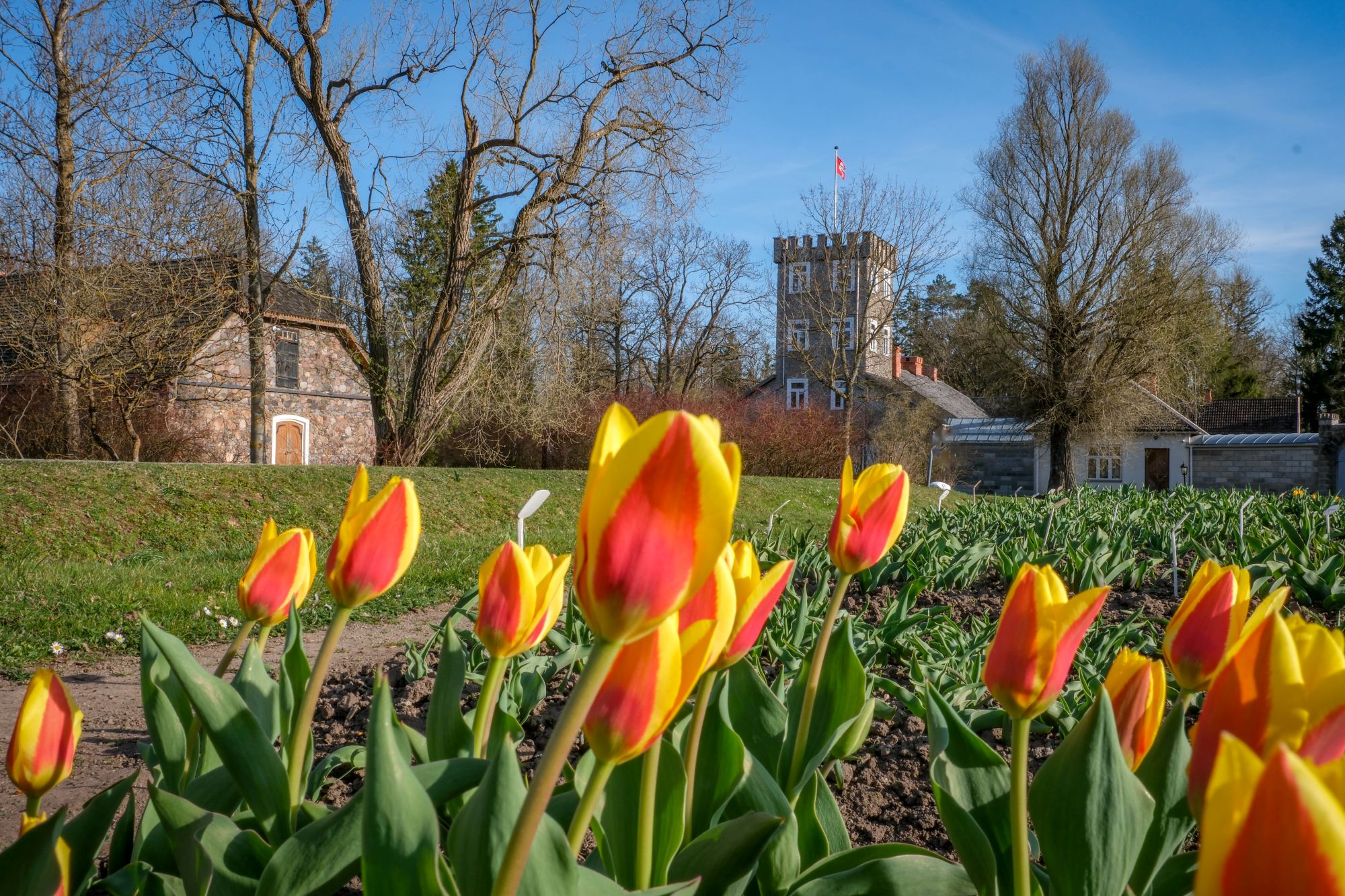 Daugyvenės kultūros istorijos muziejaus-draustinio Burbiškio dvaro istorijos muziejaus lankytojus jau džiugina ankstyvųjų veislių tulpės – pirmieji žiedai prasiskleidė balandžio viduryje.