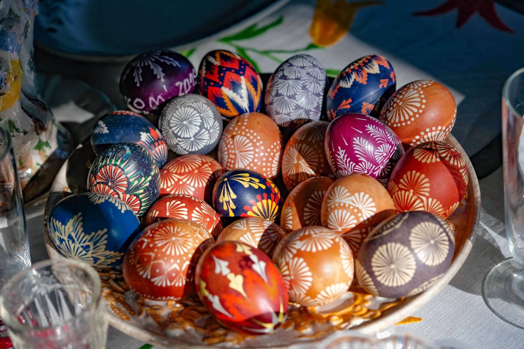 Stalo centre akis džiugina pavasario gėlių puokštė ir svarbiausias Velykų simbolis – įvairiaspalviai margučiai. Margučiais išpuošta visa seklyčia: vieni įtupdyti velykiniame medyje, kiti susiglaudę senovinėse medinėse geldose. Skirtingų meistrų numarginti margučiai atskleidžia ne tik tradicijų grožį, bet ir jų gyvybingumą.