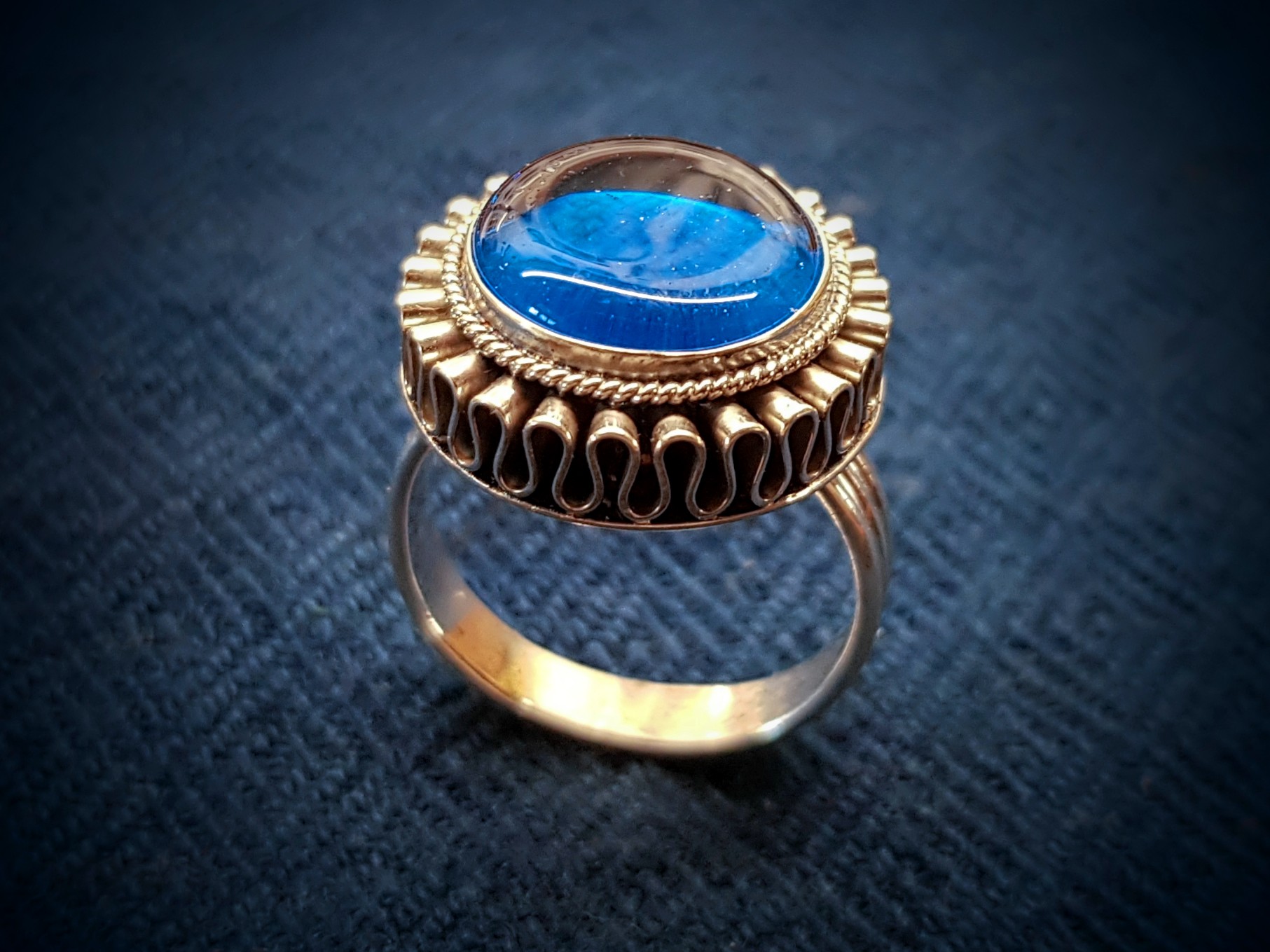 Pristatydamas parodą, E. Babenskas akcentavo: kad būtų pagaminta tiksli žiedo kopija, juvelyras turi atlikti įvairius cheminius archeologinio radinio tyrimus, identifikuoti prieš 600 metų gyvenusio meistro naudotas technologijas, atsekti gamybos proceso eigą, tiksliai parinkti metalo lydinius ir iš fragmentiškai išlikusių detalių atkurti žiedo puošybą, spalvas. Tyrinėtojai mano, jog prabangūs žiedai su stiklo akimis buvo gaminami vietoje – tai lokalus, Rytų Lietuvai būdingas papuošalas. Žiedus turėjo gaminti Kernavėje, o gal ir Vilniuje – ten jų daugiausia ir rasta.