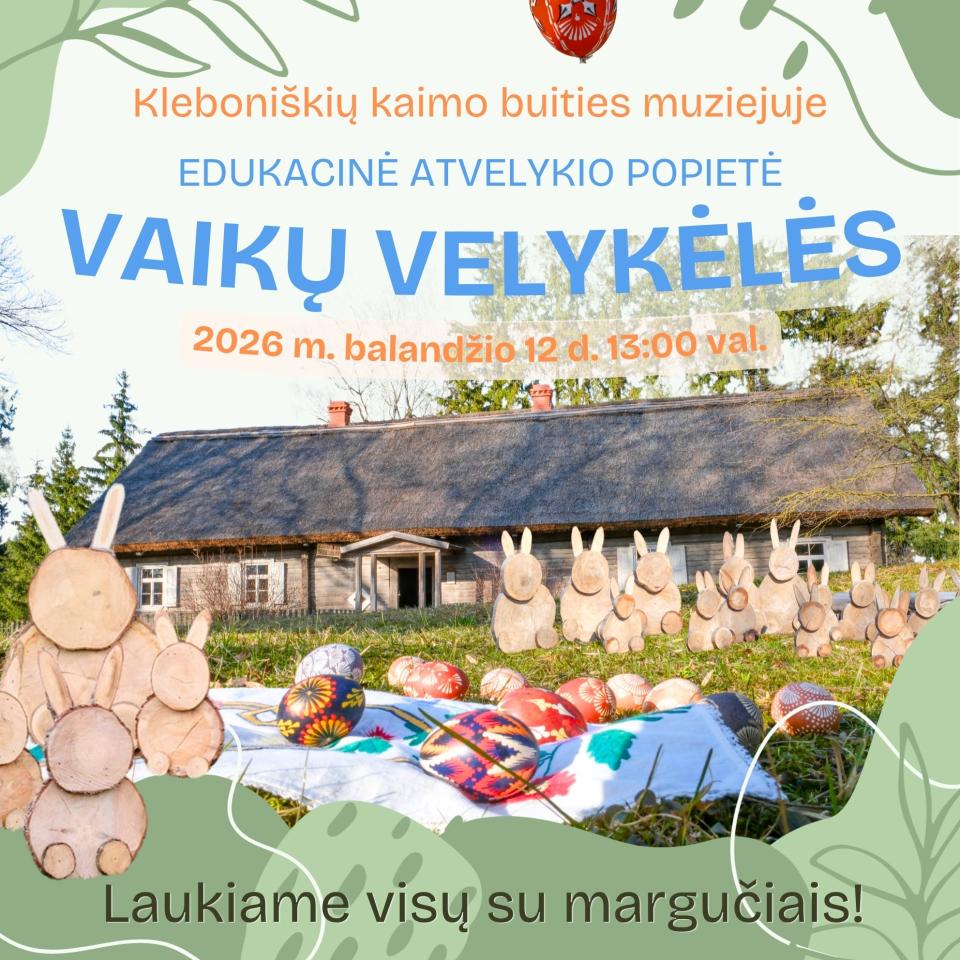 Balandžio 12 d. 13 val. Kleboniškių kaimo buities muziejuje vyks edukacinė popietė „Vaikų Velykėlės“.
