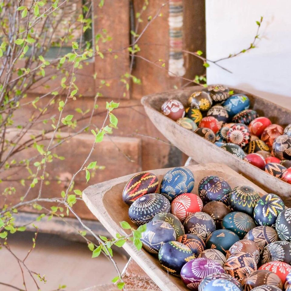 Stalo centre akis džiugina pavasario gėlių puokštė ir svarbiausias Velykų simbolis – įvairiaspalviai margučiai. Margučiais išpuošta visa seklyčia: vieni įtupdyti velykiniame medyje, kiti susiglaudę senovinėse medinėse geldose. Skirtingų meistrų numarginti margučiai atskleidžia ne tik tradicijų grožį, bet ir jų gyvybingumą.